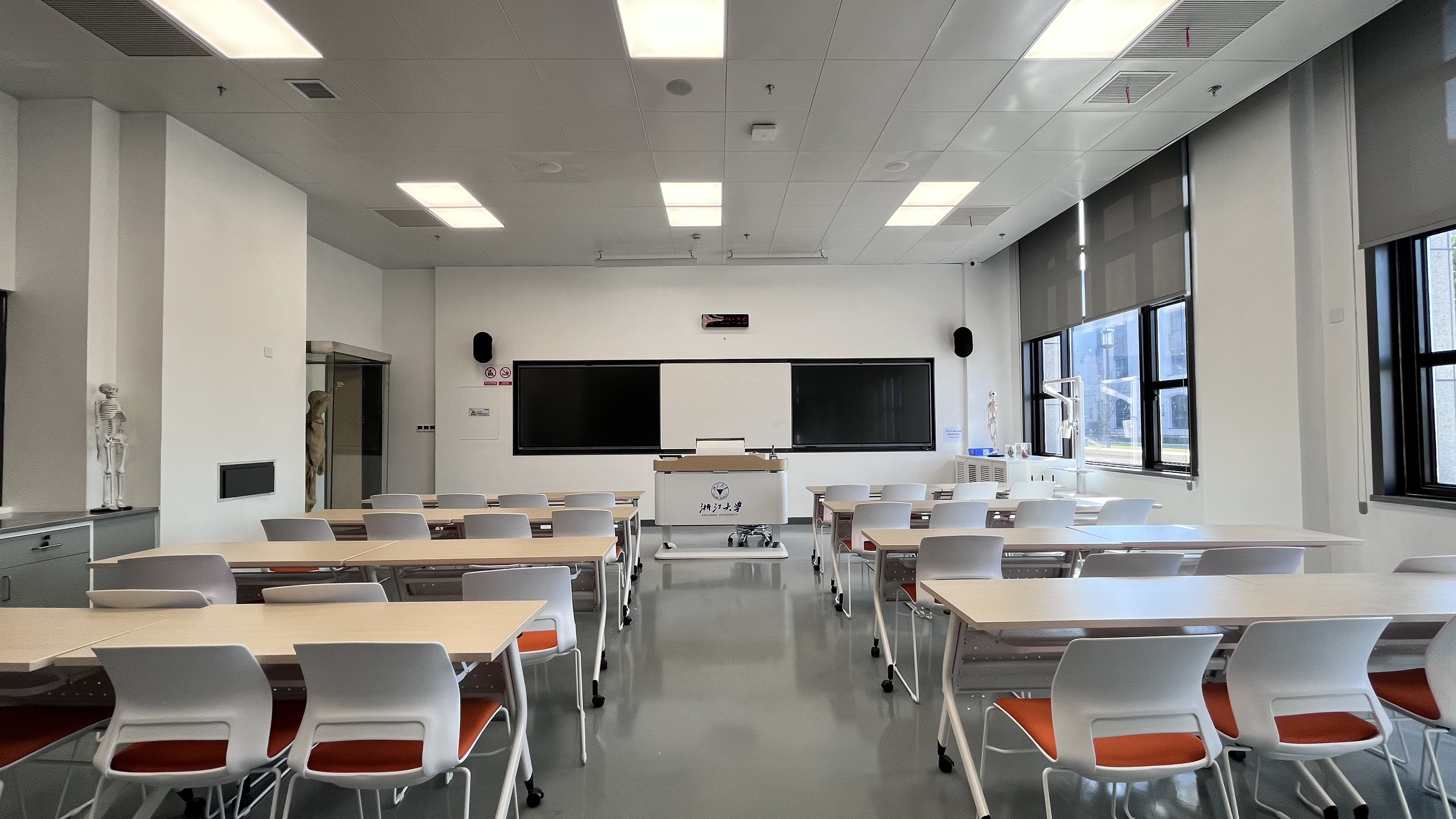 緊密貼合醫學(xué)院教學(xué)場(chǎng)景,打造多功能智慧教學(xué)空間,包括:講授教學(xué)類(lèi)大、中、小型教學(xué)空間;數碼互動(dòng)實(shí)驗室、解剖實(shí)驗室、免疫與細胞實(shí)驗室等專(zhuān)業(yè)教學(xué)空間。除配置一鍵上課、一鍵切換、一鍵管控、電子班牌、課堂錄播、線(xiàn)上線(xiàn)下同步課堂、巡考屏蔽等智慧教室的標準功能之外,還打造了精細化管理平臺,對教學(xué)空間內硬件設備、軟件系統的使用情況及能耗數據進(jìn)行科學(xué)統計與高效管理。課堂緊急情況還可實(shí)現一鍵呼叫,緊急救援。